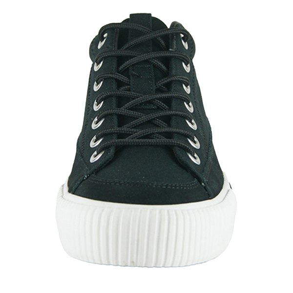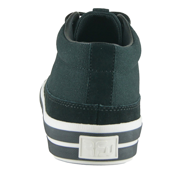 RFWを代表するモデルの一つBAGEL-MIDから初期に製作したキャンバス&スエードのモデル「STD」をアップデートさせました。BAGELの特徴であるミッドカットスニーカーはくるぶし丈で履き口がすっきりと作られており、シューレースを締めると足全体を優しくホールドしてくれます。履き口周りにはパッドが入っているので、フィット感は抜群です。またソールに配置した2本の太い黒いラインもポイントです。アウトソールはRFWのブランドカラーのシアンブルー(水色)になります。クッション性のあるPUインジェクションのカップインソールが足への負担を軽減し、快適な歩行をサポートします。アウトソールはしなやかながら耐久性の高いラバーソールになります。キャンバスのブラックの清潔な色合いは、シーンを問わず幅広くコーディネートできるのが特徴です。カジュアルなパンツスタイルからきれいめなスカートスタイルまで、様々な着こなしに合わせることができます。
