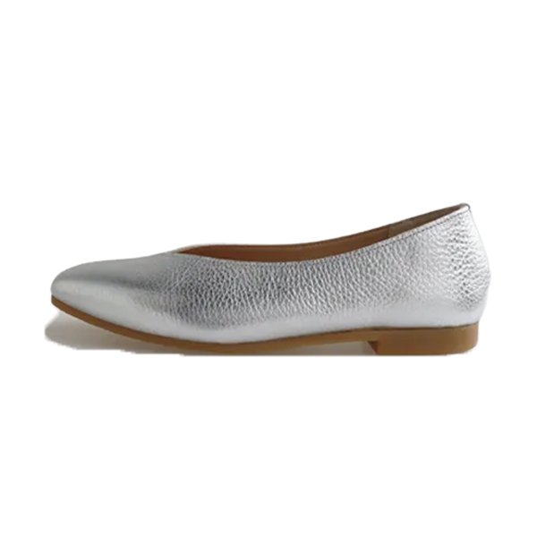 カットのトップラインが脚を美しく見せ、ヒール無しでも上品な印象に
