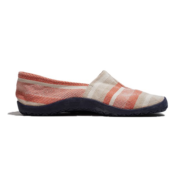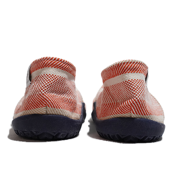足袋型コンフォートシューズ たびりら。100年の歴史の中で培った足にフィットする足型とこだわりの材料を組み合わせた、履き心地を追求した1足です。アッパーは倉敷の帆布メーカータケヤリ社製の生地、インソールは肌あたりのよい綿100%刺子を使用しています。薄くてやわらかいソールは歩きやすく、はだしのような履き心地を実感できます。※生成り原反をロット毎に手染めで処理しております。