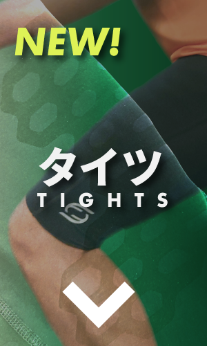 骨盤周りや大腿部のサポートを強めに入れることにより安定した走りを目指すランニングタイツ。