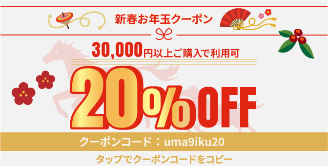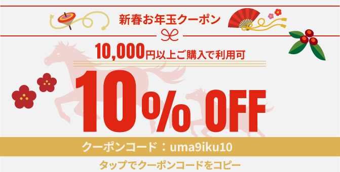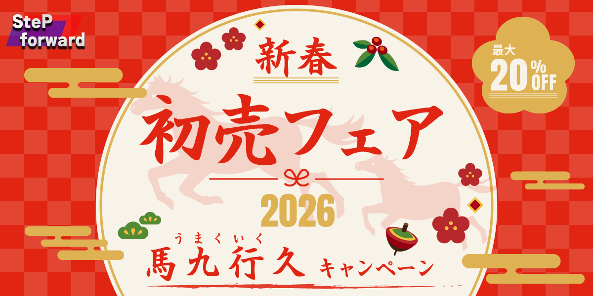 あけましておめでとうございます。 今年もSteP Forward Onlineをよろしくお願いいたします。 アスリートの皆様の競技生活に役立つアイテムをこれからもご提供していきます! さて、新年のスタートを応援するお得なクーポンを発行しました。 「馬九行久(うまくいく)」にあやかって、ケア・パフォーマンスアイテムでコンディションを整え最高のスタートダッシュを決めていきましょう!
