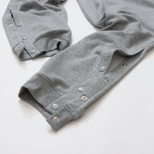 両裾にボタンを付けた仕様によって、脱ぎ着をよりスムーズに。左前腰にはCロゴワッペンを付けています。