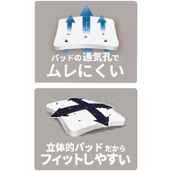 パッドに通気孔があるので、暑い時期にもムレにくく快適に使用できます。
